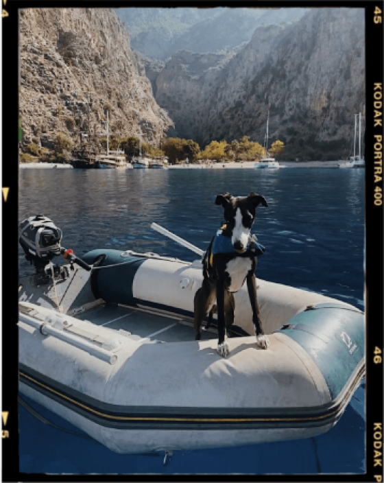 Собака отлично переносит дорогу. И очень любит исследовать новые места. Он с нами везде: и в трекинге, и на яхте, и в кафе. Мы даже научились проносить его в метро в Стамбуле — засовываем в рюкзак и наматываем шарф на голову.